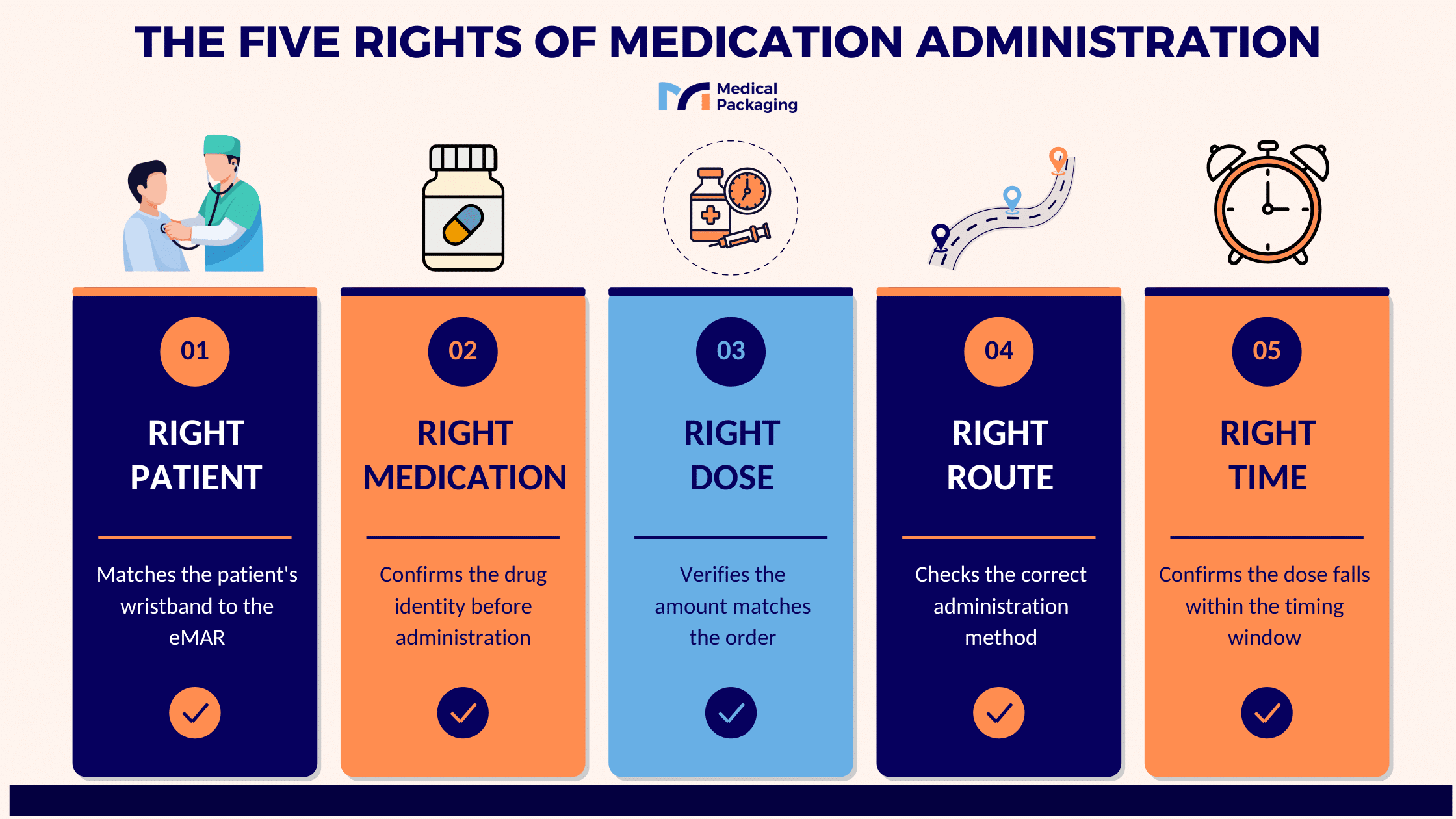 The goal is simple: confirm the five rights before every dose is given.